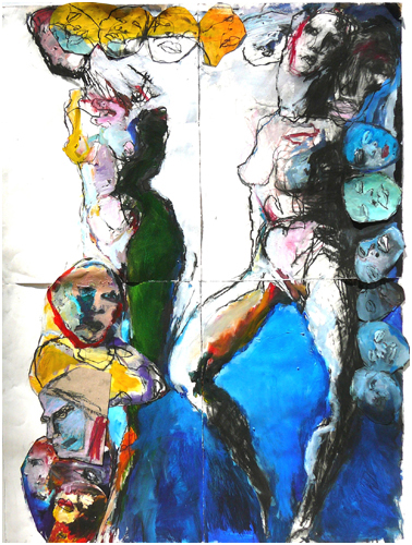 # 128 - Untitled (Teresa-Carol) 1995 Charcoal, Acrylic, Collage on Paper 60 x 44